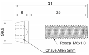 - 02 Parafusos em titânio M6 x 31 mm x passo 1,0 para Chave Allen 5mm.