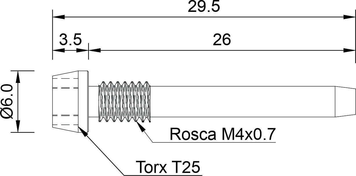 - 02 Parafusos em titânio M4 x 29,50mm x passo 0,70 para Chave Torx T25.